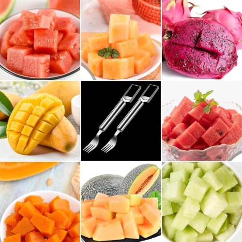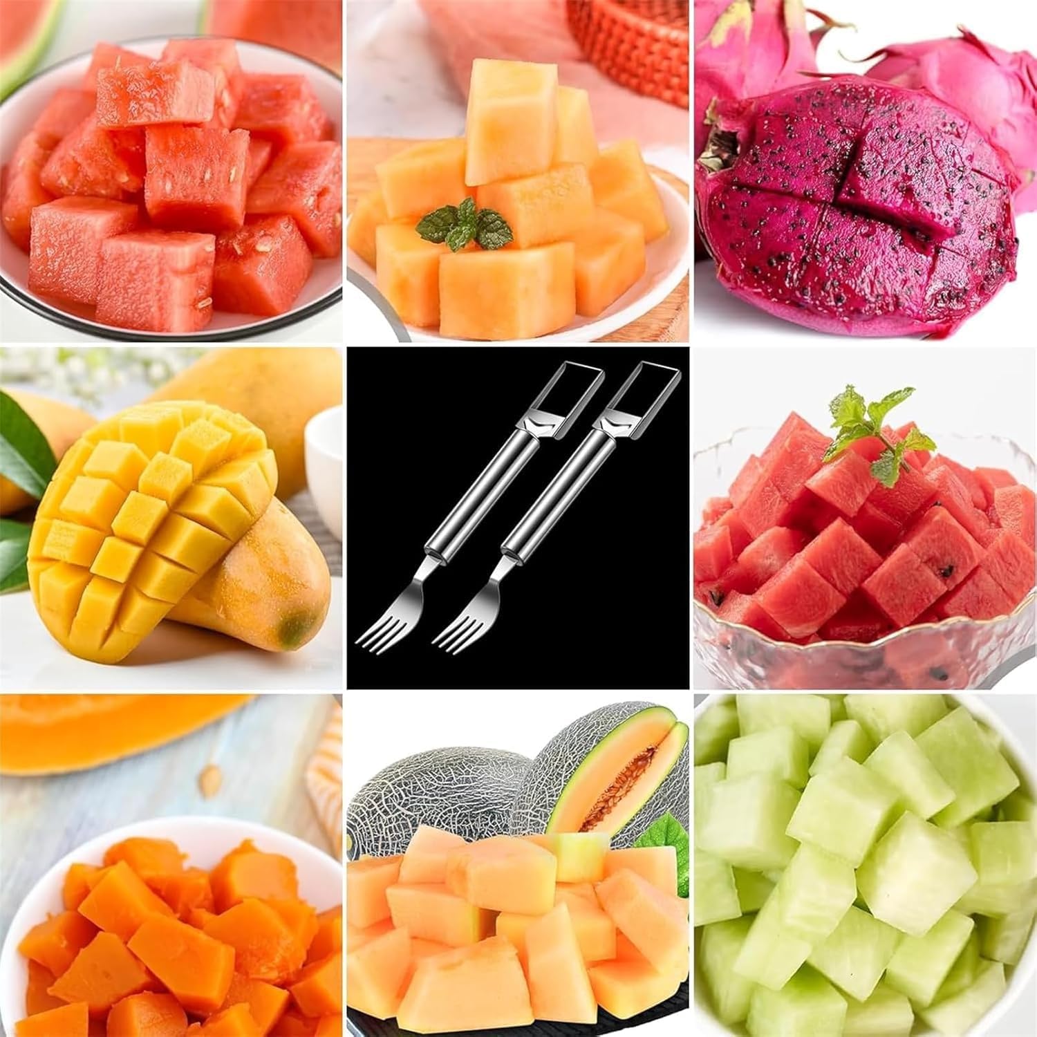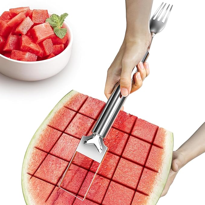 - 2-in-1 Watermelon Cutter & Slicer Stainless Steel Windmill Watermelon Cube Cutting Tool with Fork – Easy & Mess-Free Fruit Slicer for Watermelon, Cantaloupe, Melon