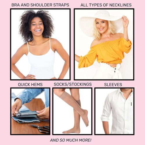 Forget bulky safety pins—this invisible tape leaves no marks or lines, ensuring a smooth and seamless look for any outfit. Ideal for securing necklines, fixing hemlines, keeping straps in place, or preventing wardrobe malfunctions, the tape sticks clothing to your skin or undergarments discreetly and effectively.