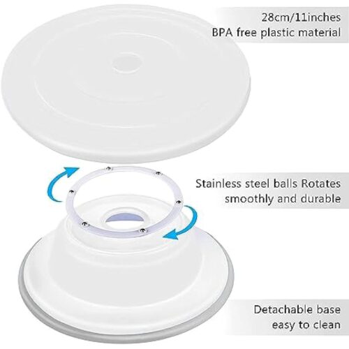 Made from premium food-grade PP material, it’s completely safe for food contact and easy to clean with just water and a towel. Lightweight yet sturdy, this turntable is also perfect for displaying your finished creations at parties, weddings, or other events. Its classic white design blends effortlessly with any décor, making it both a functional and stylish addition to your baking tools.
