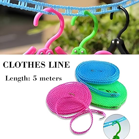 This 5-meter clothes drying rope is made from durable, high-strength nylon, built to handle heavy laundry loads without stretching or snapping. Its windproof design includes anti-slip beads that hold hangers securely in place, preventing clothes from sliding or falling—even on breezy days.