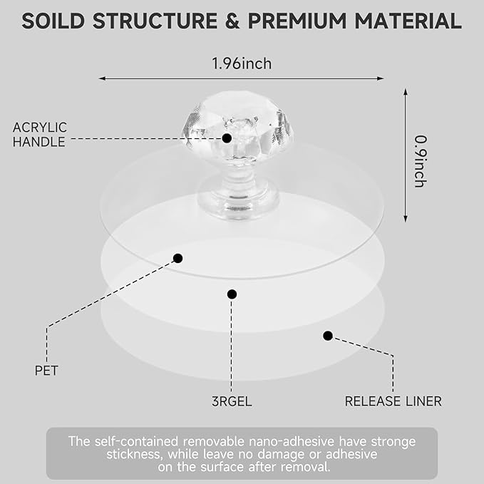 - Crafted with a sleek diamond-shaped design and transparent PVC backing, these hooks seamlessly blend into any decor while adding a modern, decorative touch. The self-adhesive, nail-free installation makes setup quick and damage-free—no drills or tools required.