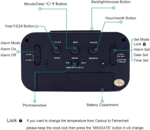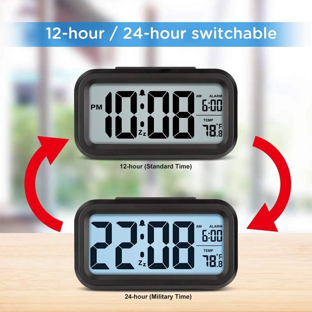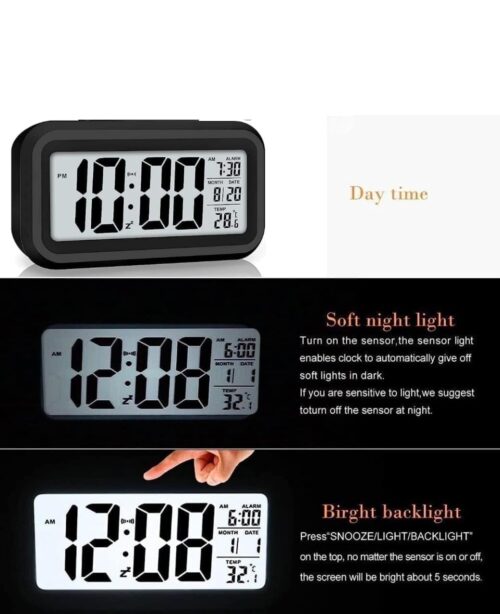 - Digital Alarm Clock with Automatic Sensor, Date and Temperature Display, Table Clock for Students, Home, Office, Corporate Use (Black Digital)