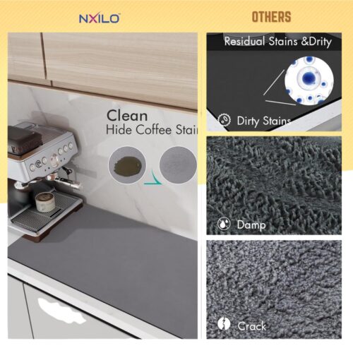 Upgrade your kitchen with this 30×40 cm Dish Drying Mat, designed for efficient drying and countertop protection. The non-slip rubber bottom ensures stability while holding dishes, mugs, or appliances like coffee makers securely in place. Its anti-scratch and waterproof design prevents water from seeping through, protecting your surfaces from damage.