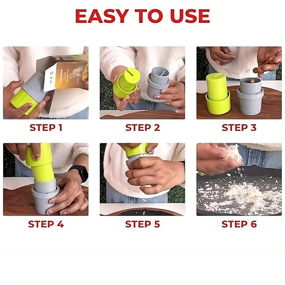 Its compact design saves valuable kitchen space, making it easy to store in drawers or even refrigerators. Whether you’re preparing sweets, garnishing desserts, or adding crunch to dishes, this nut cutter delivers fast, precise slices every time. Even kids can use it safely under supervision!