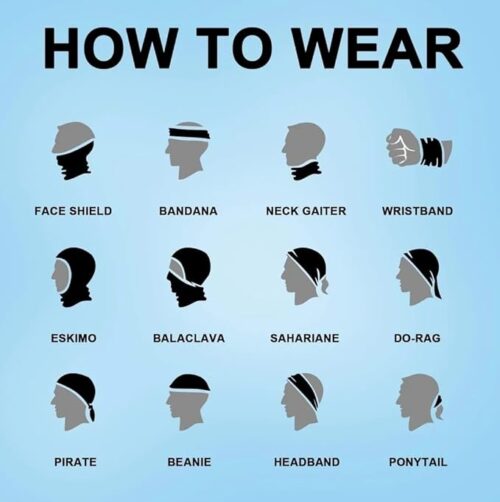 With over 12 ways to wear, this bandana offers flexible styling options that a fit your mood and activity. It adds a fashionable touch while providing practical use for men and women alike. The one-size-fits-all design (14×9 inches) stretches in all directions for a comfortable fit—not too tight nor loose.