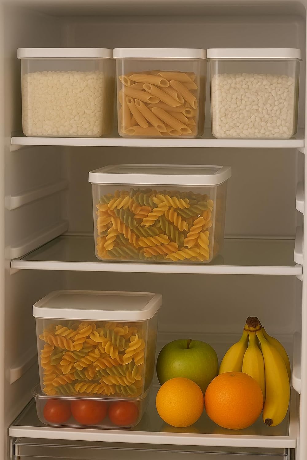 Keep your kitchen and refrigerator organized with this 6-piece fridge container set. Designed for maximum efficiency, each container features an airtight lid that locks in freshness and prevents spills, making them ideal for storing fruits, vegetables, leftovers, dry goods, and more.