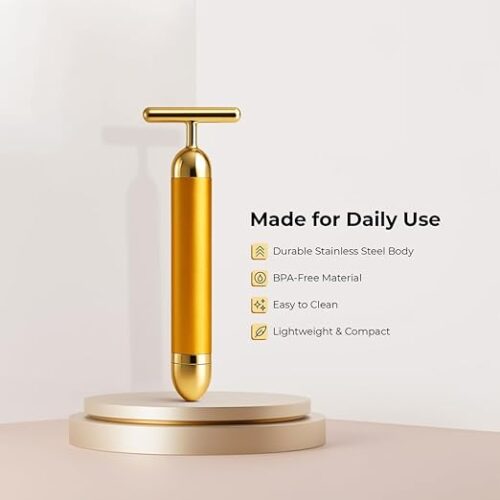 ✨ The T-shaped head produces 6,000 vibrations per minute, helping to stimulate blood circulation, relax facial muscles, and enhance absorption of serums and anti-aging products.