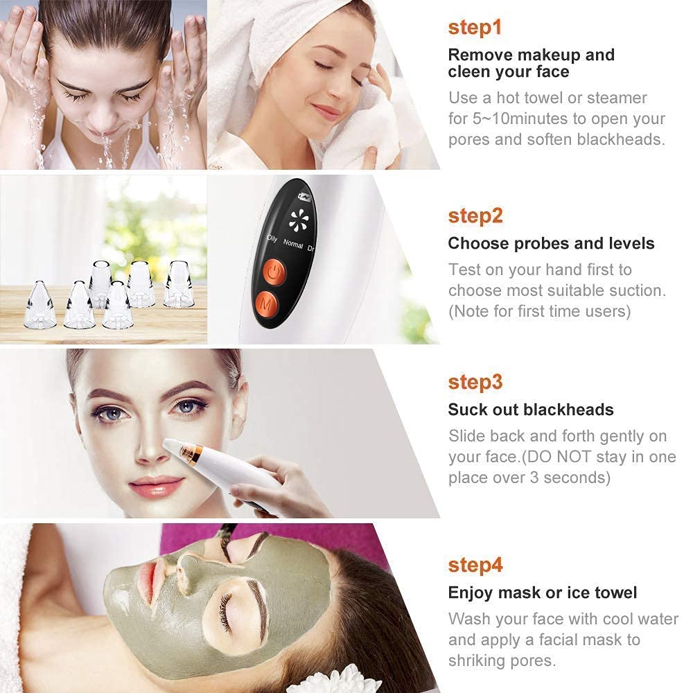 Achieve clearer, smoother skin with the 6-in-1 Blackhead Remover Vacuum Cleaner, a professional-grade tool designed for all skin types. With three adjustable suction levels, you can safely tailor the intensity: Level 1 for oily and sensitive skin, Level 2 for normal skin, and Level 3 for dry or combination skin to tackle stubborn blackheads.