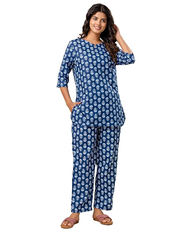 Ideal for all seasons, the cotton fabric keeps you cool during summers and cozy in mild winters. The beautiful prints add a cheerful, fashionable touch, making you feel confident even in your comfort wear.