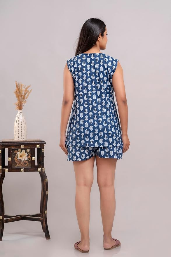 - Jaipuri Printed Cotton Shorts Sleeveless Lounge Wear Set (Combo Pack)