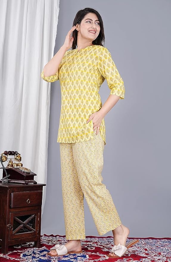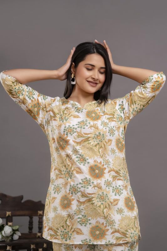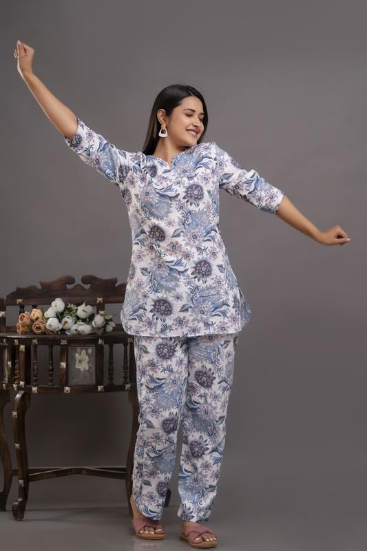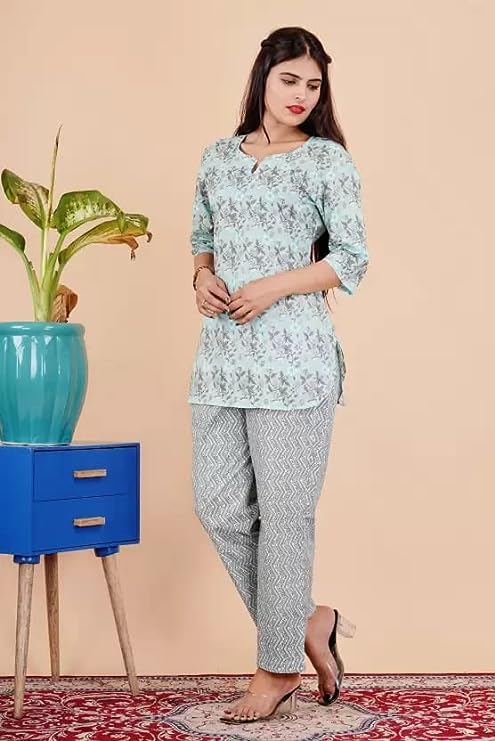 The soothing grey shade paired with authentic Jaipuri prints adds a touch of ethnic charm while keeping the look modern and stylish. Its V-neck design enhances the neckline beautifully, and the regular-fit silhouette flatters all body types, ensuring ease of movement throughout the day.
