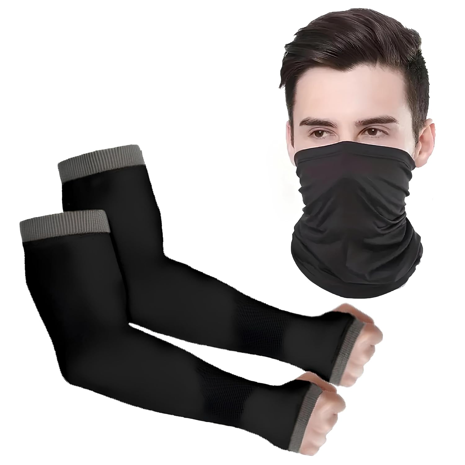 Stay protected and stylish with our Men’s Biker Face Bandana & Arm Sleeves UV Protection Combo – the perfect accessory for outdoor enthusiasts and riders. This versatile combo is designed to serve multiple purposes: it can be worn as a headband, neck gaiter, face mask, wristband, or even tied to your bag for a trendy look. Ideal for bikers, hikers, gym-goers, or festival lovers, it offers practical protection while enhancing your style.