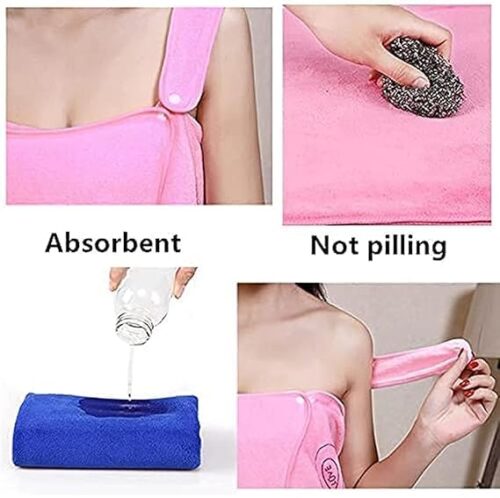 Designed with versatility in mind, it functions as both a bath towel and a wearable bathrobe, making it ideal for bathing, spa sessions, gym routines, poolside lounging, or beach outings. The secure closure and adjustable fit keep the towel comfortably in place, allowing you to move freely without worrying about slips.