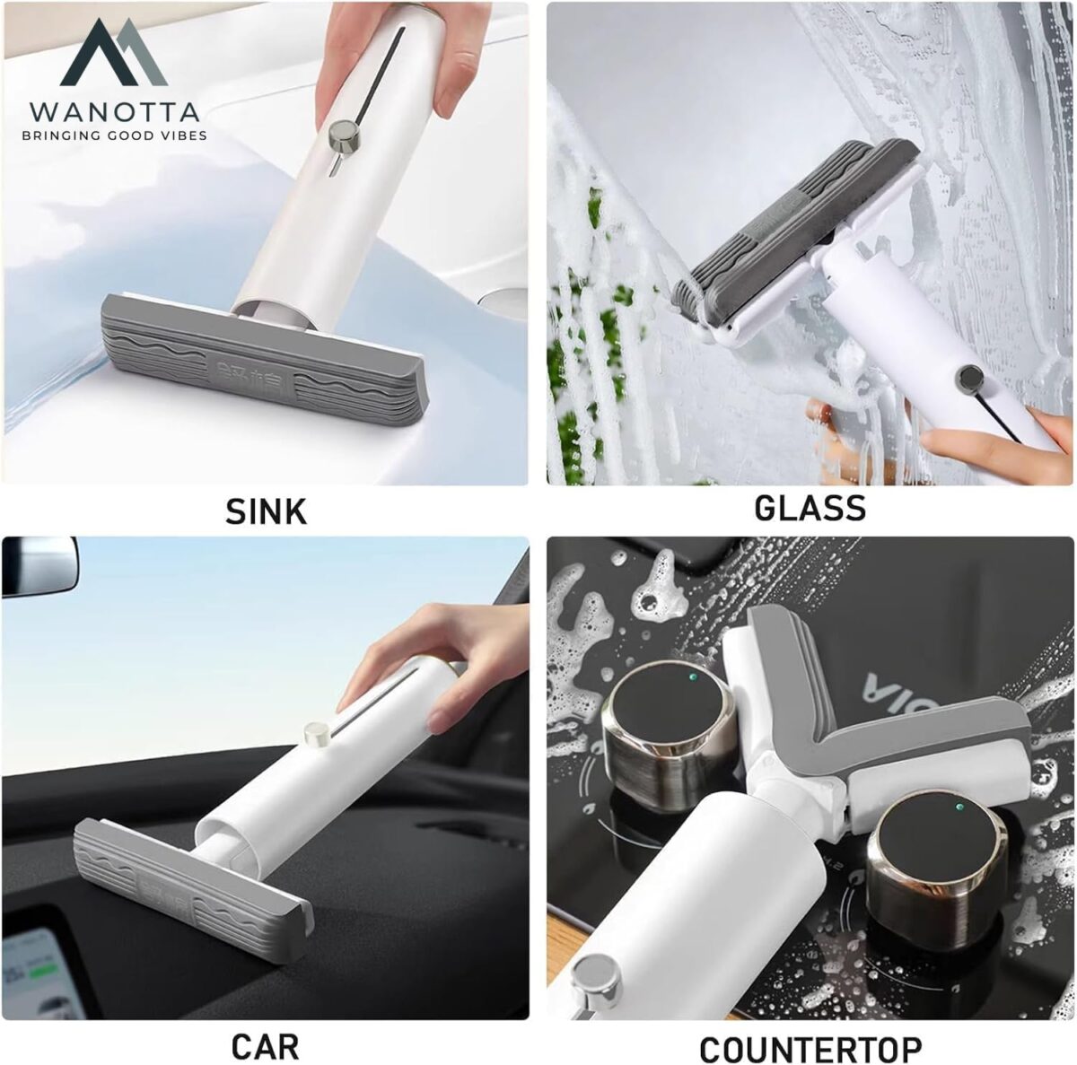 Revolutionize your cleaning routine with the Wanotta Self-Squeezing Mini Mop! This all-in-one package includes 1 sponge head, 1 squeeze handle, a mini gap cleaning brush, and an adhesive hook for easy storage.