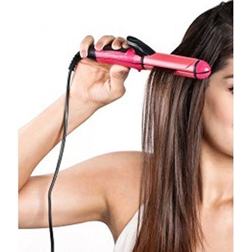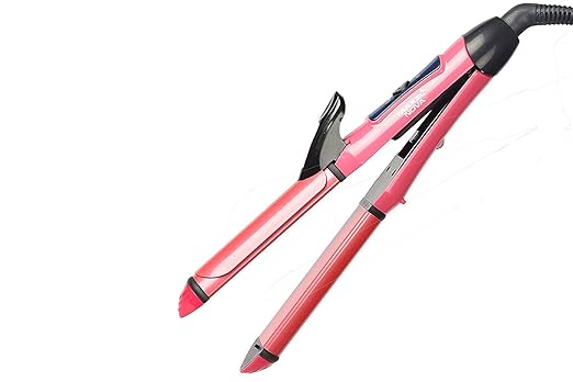- Nova 2 In 1 Hair Straightener Plus Curler with Ceramic Plate, Pink