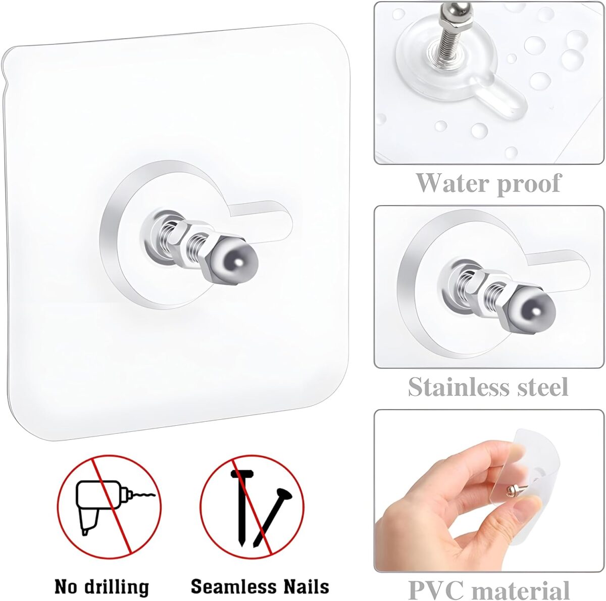 Design: Clear base with sturdy stainless steel hook
