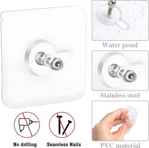 Each hook supports up to 15 lbs (depending on surface), making them ideal for hanging towels, kitchen utensils, bags, keys, and more. The transparent adhesive base blends invisibly into any décor, maintaining a clean, minimalist look in your room.