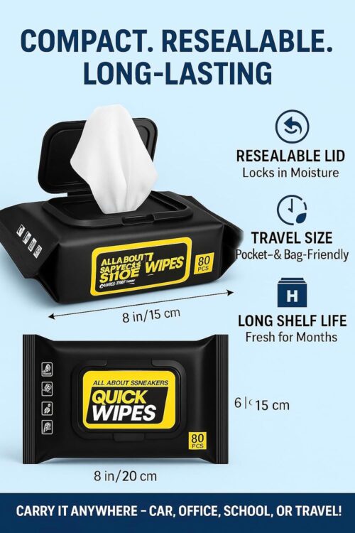 The resealable pouch keeps wipes moist and makes them ultra-portable—perfect for travel, work, or your gym bag. A light, refreshing scent ensures your footwear smells as clean as it looks.
