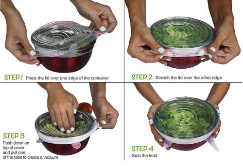 - Silicone Stretch Lids reuseable Flexible Covers for Rectangle, Round, Square Bowls, Dishes, Plates, Cans, Jars, Glassware and Mugs (Free Size) – Set of 6