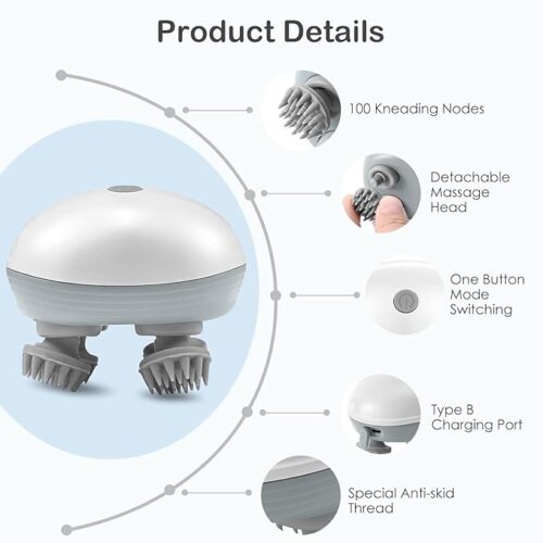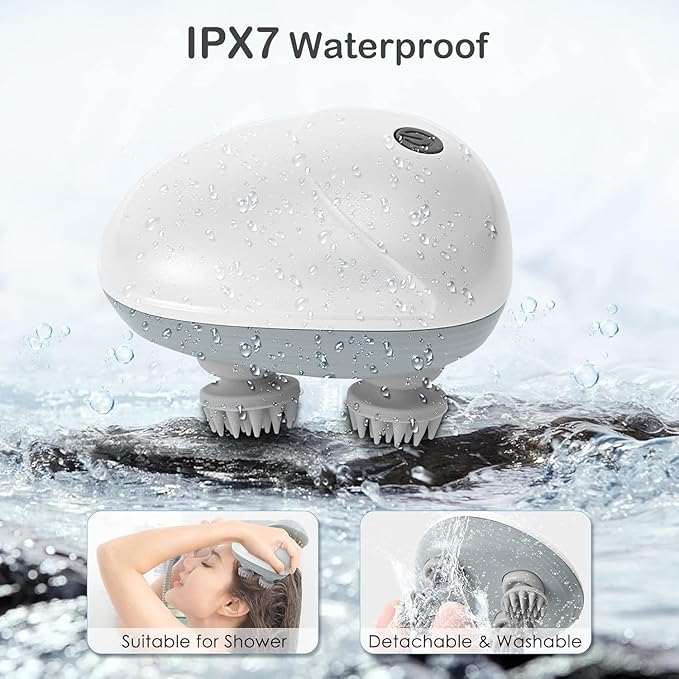 This versatile massager isn’t just for your head—it’s great for massaging the neck, shoulders, back, and even your pets, providing total relaxation. The IPX7 waterproof design allows safe use in the shower, and the detachable silicone heads are washable for easy maintenance.