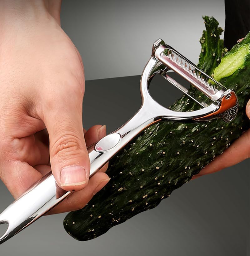 ✅ Effortless Precision – Ultra-sharp stainless steel blades peel potatoes, apples, cucumbers, papayas, and more with ease.