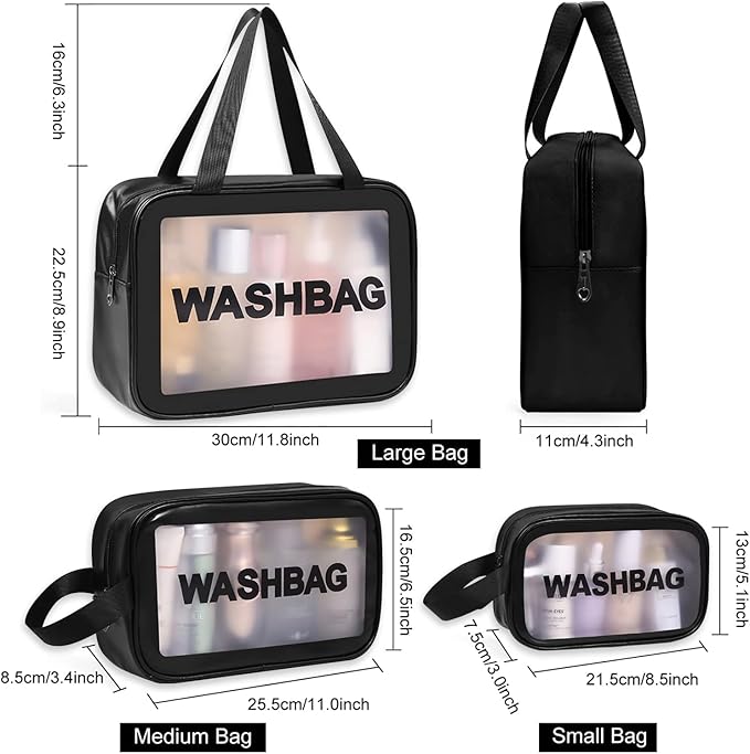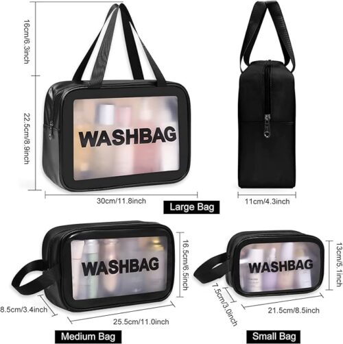 - Washing Bag Pouch for Travel Kit Toiletry Bag Nylon Cosmetic Bag Make Up Box for Brushes, Accessories with Handle, Large Capacity Translucent Waterproof Travel Storage Organizer Set of 3 (Black)