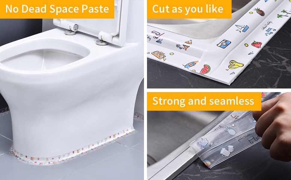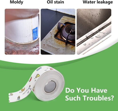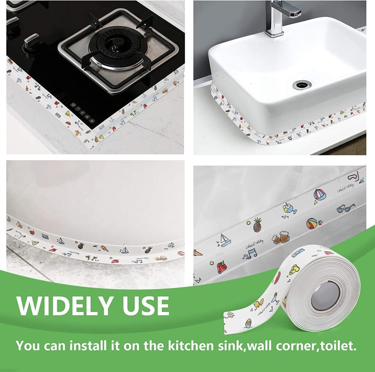 - Waterproof Tape for Kitchen Sink Oil Proof Caulk Tape Strip Self Adhesive Bathroom Corner Caulking Sealing Tape Gap Sealer Waterproof Tape for Platform Basin Toilet (Multi Print)