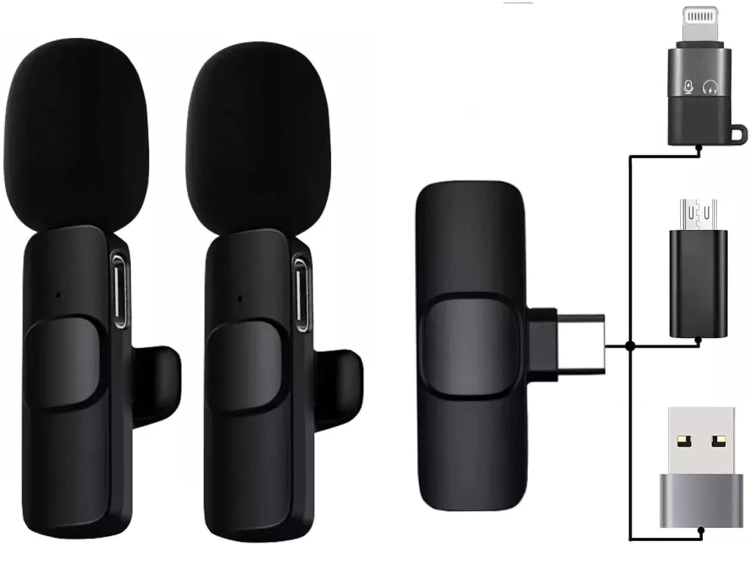 Capture crystal-clear audio effortlessly with the Careflection K9 V4.0 Wireless Collar Mic – Multi-Device Support. Designed for creators, vloggers, podcasters, and live streamers, this plug-and-play clip-on microphone delivers professional-grade sound without extra apps, adapters, or Bluetooth pairing. Simply plug into your phone (iOS or Android) via Micro USB, Type C, iPhone/iPad lightning connector, or USB Type A, and enjoy automatic pairing and instant use.