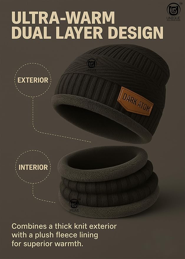 - Woolen Beanie & Neck Warmer Set – Unisex (Black)